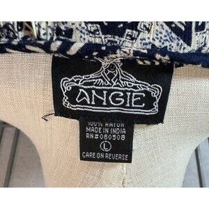 Angie Navy Blue White Boho Cold Shoulder Blouse Top Women’s EUC Rayon M