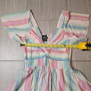 Angie Rainbow Twisted Knot Bust mini dress in a size Large