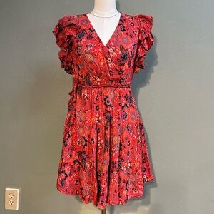 Angie Red Asymmetrical Wrap Sundress with Flutter Sleeves