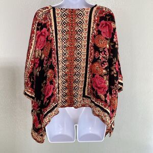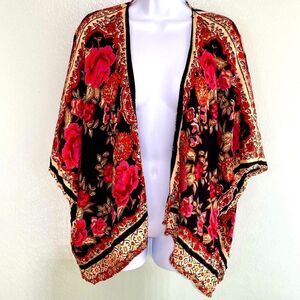 Angie Red Rose Scarf Kimono Cover Up, Boho Cardigan L