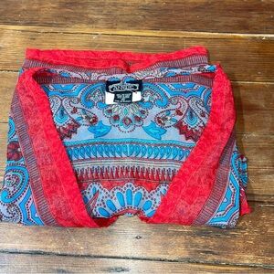 Chic Angie dress with red and blue / turquoise paisley design. Lightweight and stylish.