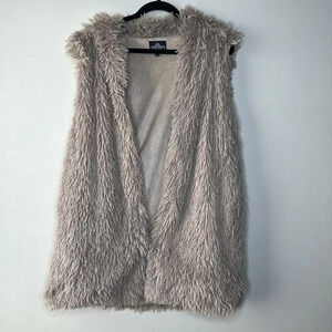 Angie faux fur fluffy long vest size medium. In excellent condition!! Has a hook and loop closure on the front.