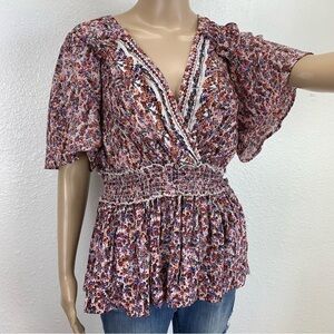 Angie Short Sleeve Surplice Floral Printed Woven Top bohemian Liberty print new