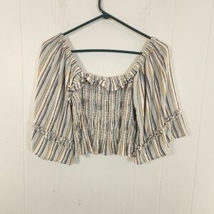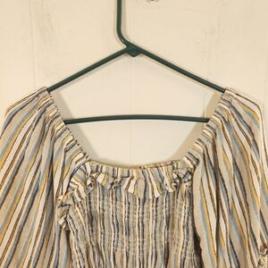 Angie Striped Smocked Peasant Boho Blouse Size Medium Milkmaid