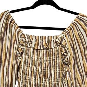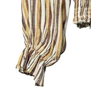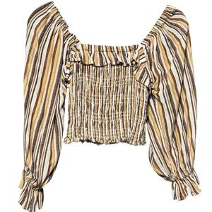 Angie Striped Smocked Peasant Style Cropped Off Shoulder Boho Festival Blouse