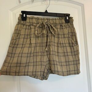 Angie Tan Cargo plaid Shorts Relaxed Fit Lightweight with draw string