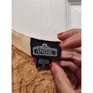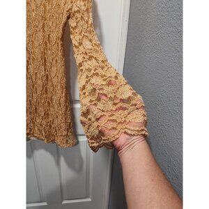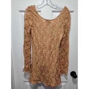 Angie Tan Stretchy Boho Flare Lace Overlay Long Bell Sleeve Dress - Size Medium