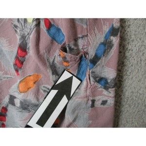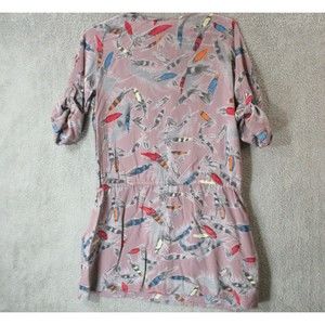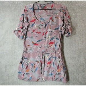 Angie Top Womens Small Drawstring Waist Colorful Feather Tunic Pocket Shirt S