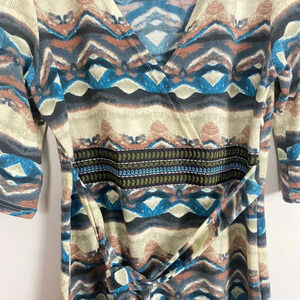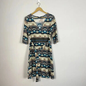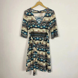 Lovely tribal pattern V neck faux wrap Attached waist tie Size medium