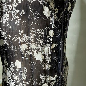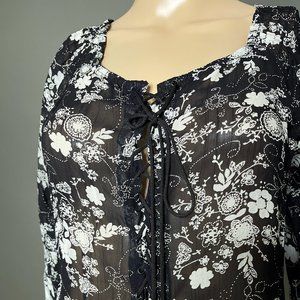 Angie Tunic Black/Flowers Laces up the Front Slits on the Sides/Front Size Small