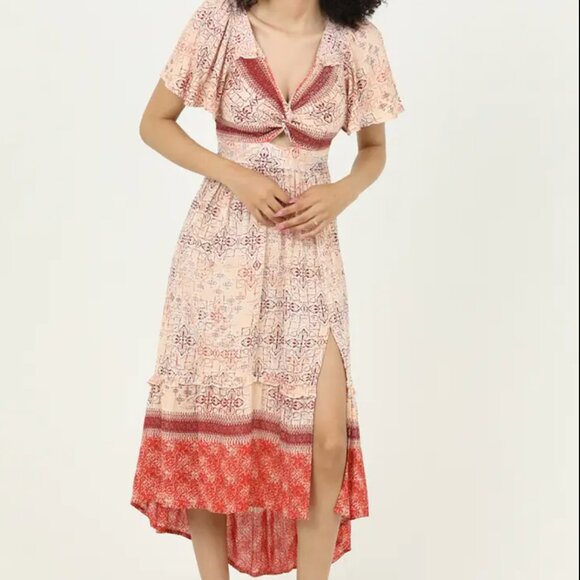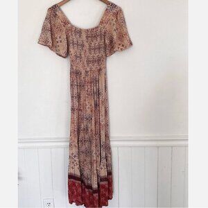 Angie Twist Knot Bohemian Slit Midi Maxi Dress Size XS/Small Floral Smocked B32