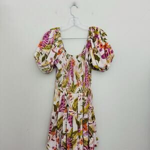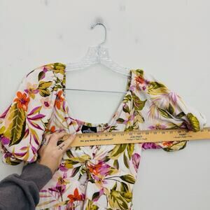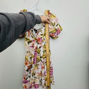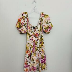 Angie V Neck Puff Sleeve Tropical Print Dress Women’s Size L