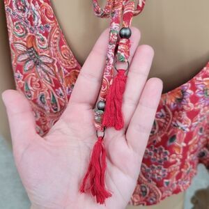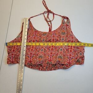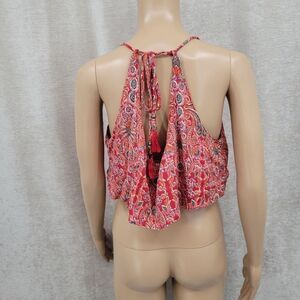Angie Vintage Baroque Bohemian Red Tie Neck Crop Top