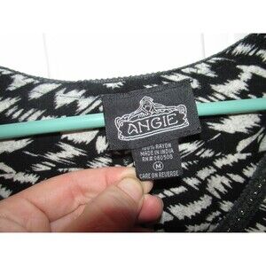 Angie Women's Black & White Abstract Print V-Neck Sleeveless Tunic Top Size M
