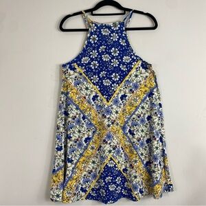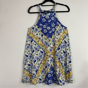 Angie Women’s Boho Blue & Yellow Floral Mini Halter Sundress Sz M