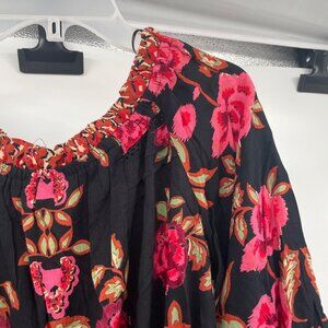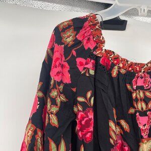 Angie Womens Floral Romper 3/4 Sleeve Cinched Waist Black/Multi Size Small