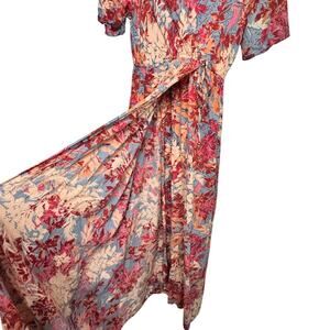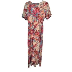 Angie Women’s Floral Wrap Maxi Dress Boho Short Sleeve Rayon Size M