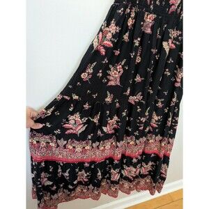 Angie Womens Maxi Dress 1X Smocked Boho Tiered Dark Romantic Cottage Prairie