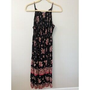 Angie Womens Maxi Dress 1X Smocked Boho Tiered Cottage Peasant Prairie Flowy