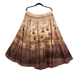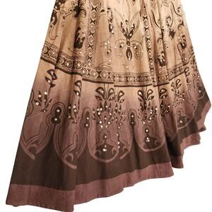 Angie Womens Peasant Midi Skirt Size Small Brown Ombre Tie Waist Boho Sequins