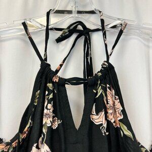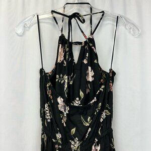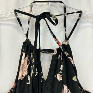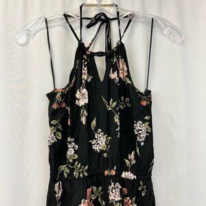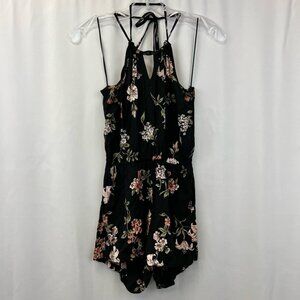 Angie Womens Romper Black Pink Floral Print Halter Sleeveless Spaghetti Strap S