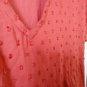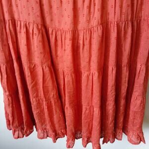 Angie Women's Size S Small Tiered Lined Lightweight Summer Sun Dress Sundress Beach Cover-up in a dusky terracotta orange with V-Neck and Swiss Dot Texture