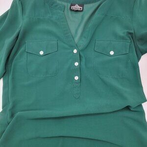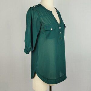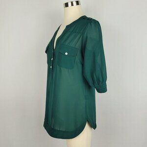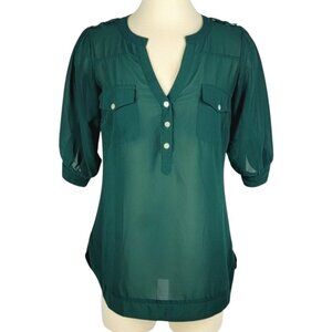 Angie Womens Sheer Tunic Blouse Small Green Career Ethereal Layer Goblin…