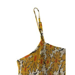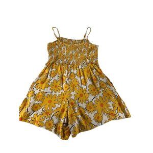 Angie Womens Yellow Floral Smocked Adjustable Strap Romper Sz M Wide Leg Summer