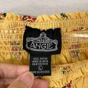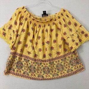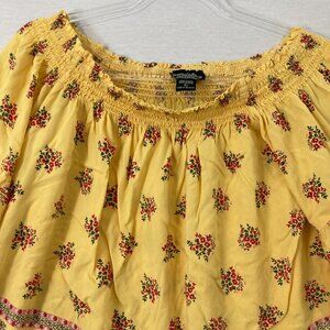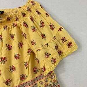Angie Yellow Floral Off The Shoulder Smocked Boho Top Large Vacation