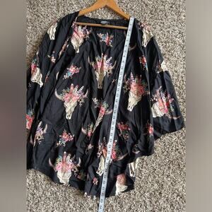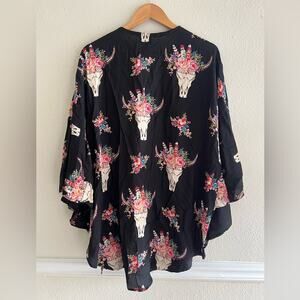 Angie black floral cow skull open cardigan bell sleeve size Medium