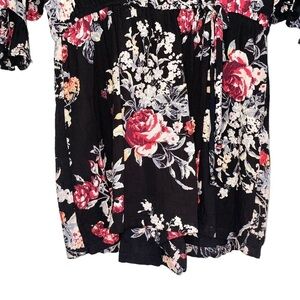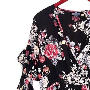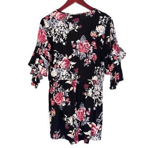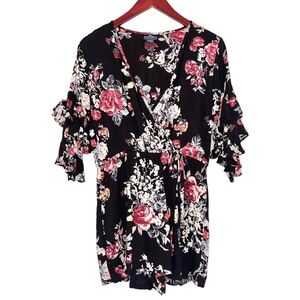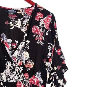 Angie floral faux wrap tunic top tie waist mini dress black red women’s large