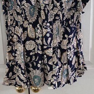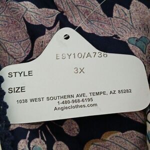 Angie navy ivory floral peasant vneck blouse Sz 3X NWT