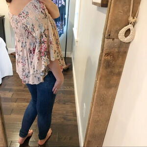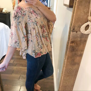 Angie small oversized floral smocked babydoll romantic top with bell sleeves