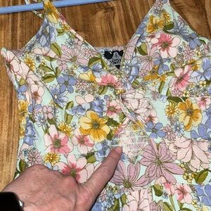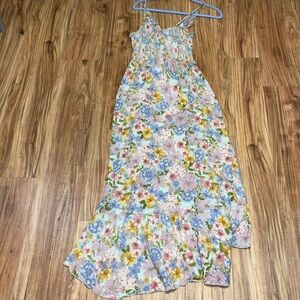 Angie women’s large 12 14 Dress Floral Maxi spaghetti strap slits blue light