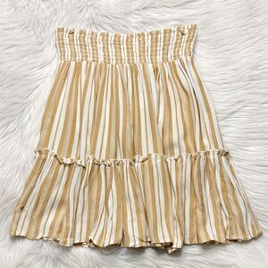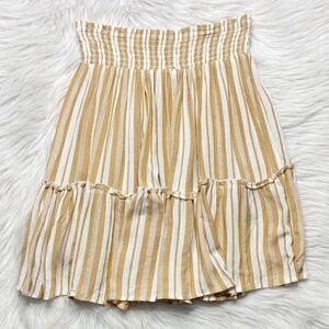Angie Smocked Waisted Striped Skirt Orange and Ivory Medium