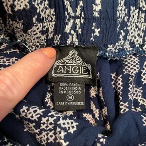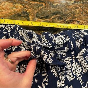 Angie tie front shorts Loose fit flowy boho vibe Size medium juniors Blue white print EUC