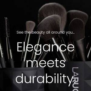 Beautiful angled makeup brush by Laruce. Durable and beautifully made. Works fantastic! The handle is easy to grip and very comfortable. The brush is super soft and is excellent for applying and blending. Brand new.
