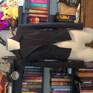 Great condition, black, damask print, side angle zip, motto jacket. true to size 0. Measurements in photos, 24" sleeve 16.5 chest. Fabric has quite a bit of stretch.