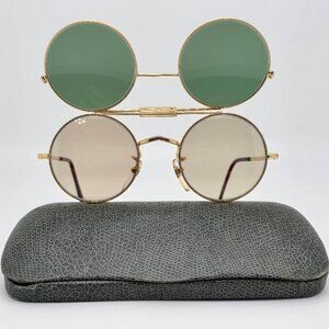 Anglo American Eyewear Mod. M85 Col. GO Flip-Up Gold Frame Green Lens Sunglasses