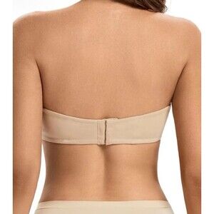 Angool Beige Strapless Bra Women's M Padded Non-Slip Wirefree Bandeau Bralette