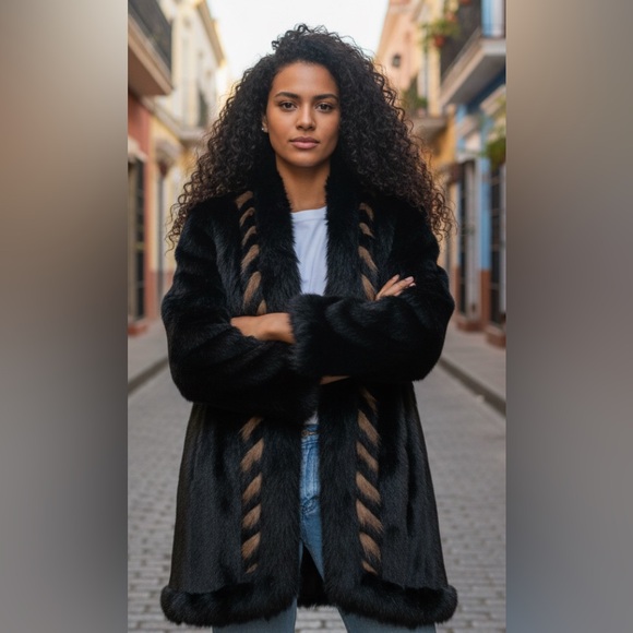 Luxurious Angora Rabbit Coat from Fully Fashion, featuring stunning braided detail, perfect for adding elegance to any winter ensemble. Crafted with a shell of 80% Angora and 20% Nylon, and an inner composed of 100% Acrylic. The total contents are 48% Acrylic, 42% Angora Rabbit Hair, and 10% Nylon. This stylish coat boasts a plush, soft texture and a chic design, making it an ideal statement piece. Excellent pre-owned condition, with no visible flaws, rips, or stains.