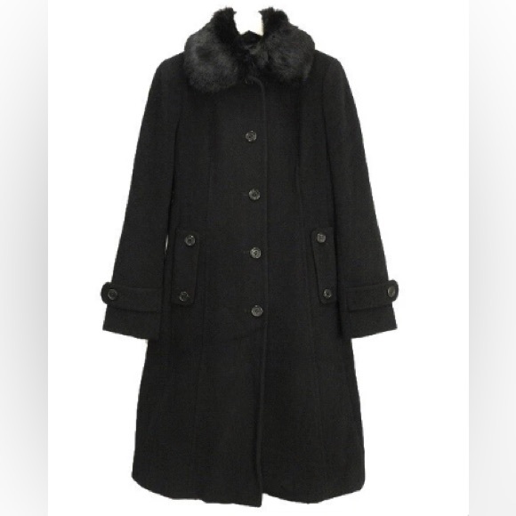 Angora wool Burberry Black Trench Coat with Fur Collar