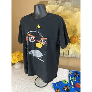 Angry Birds 2009 Black Graphic Print Shirt An Blue Pajama Pants Set Size L