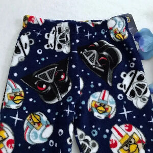 NWT. Fleece Pajama Bottom for Boys Size 4. Blue with Star Wars Angry Birds graphic characters throughout, elastic waist. Pictures are part of description.