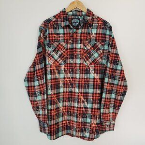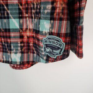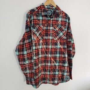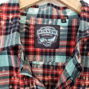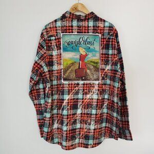 Angry Minnow Distressed Flannel XL - Cotton Red/Turquoise "Wanderlust" Graphic