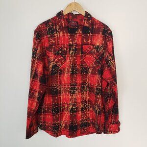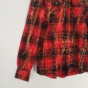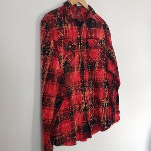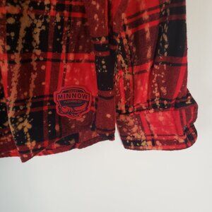 Angry Minnow Flannel Shirt XL Willie Nelson Graphic Red/Black Bleach Distressed