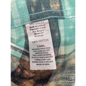 The Angry Minnow Teal Plaid Soft Flannel Shirt is a stylish and comfortable option for casual wear. Featuring a collared neckline and button closure, this shirt is perfect for any season and occasion. Made from soft flannel fabric, it is machine washable and easy to care for. The shirt also has pockets, long sleeves, and a regular fit, making it a versatile addition to any wardrobe. With a unique statement theme of colorful grunge and outdoor vibes, this shirt is sure to stand out and make a statement.