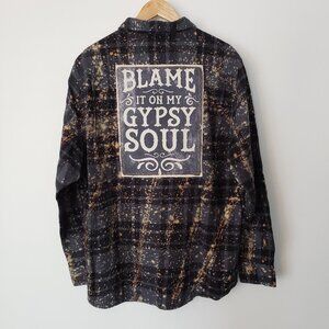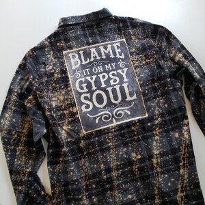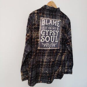 Angry Minnow XL Distressed Cotton Flannel NWT - "BLAME IT ON MY GYPSY SOUL"