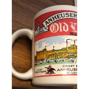 Vintage Anheuser Busch Old Lager Beer advertising mug. Official Anheuser Busch product. Beautiful bright, crisp, colorful graphics. No chips or cracks. Normal spider webbing inside mug bottom. Holds approximately 12 fluid ounces. Measures 4x3.5x3.5 inches. Pre owned but in great condition. Great collector piece. 102.06