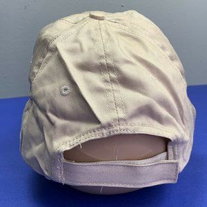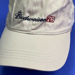 Budweiser embroidered strapback hat. Khaki tan with embroidered logo. One size. Has a small discolored area on the side (see photo) - good condition otherwise.